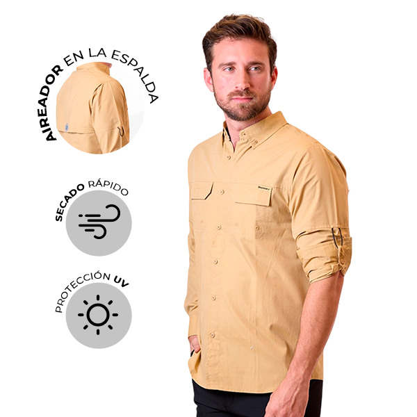 Con las mangas enrollables y el cuello con protección solar, respirador en la espalda, podrás cubrirte más la piel en días soleados. Además, también dispone de la tecnología que repele los insectos.